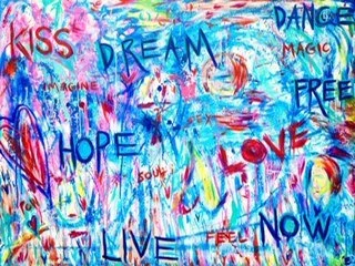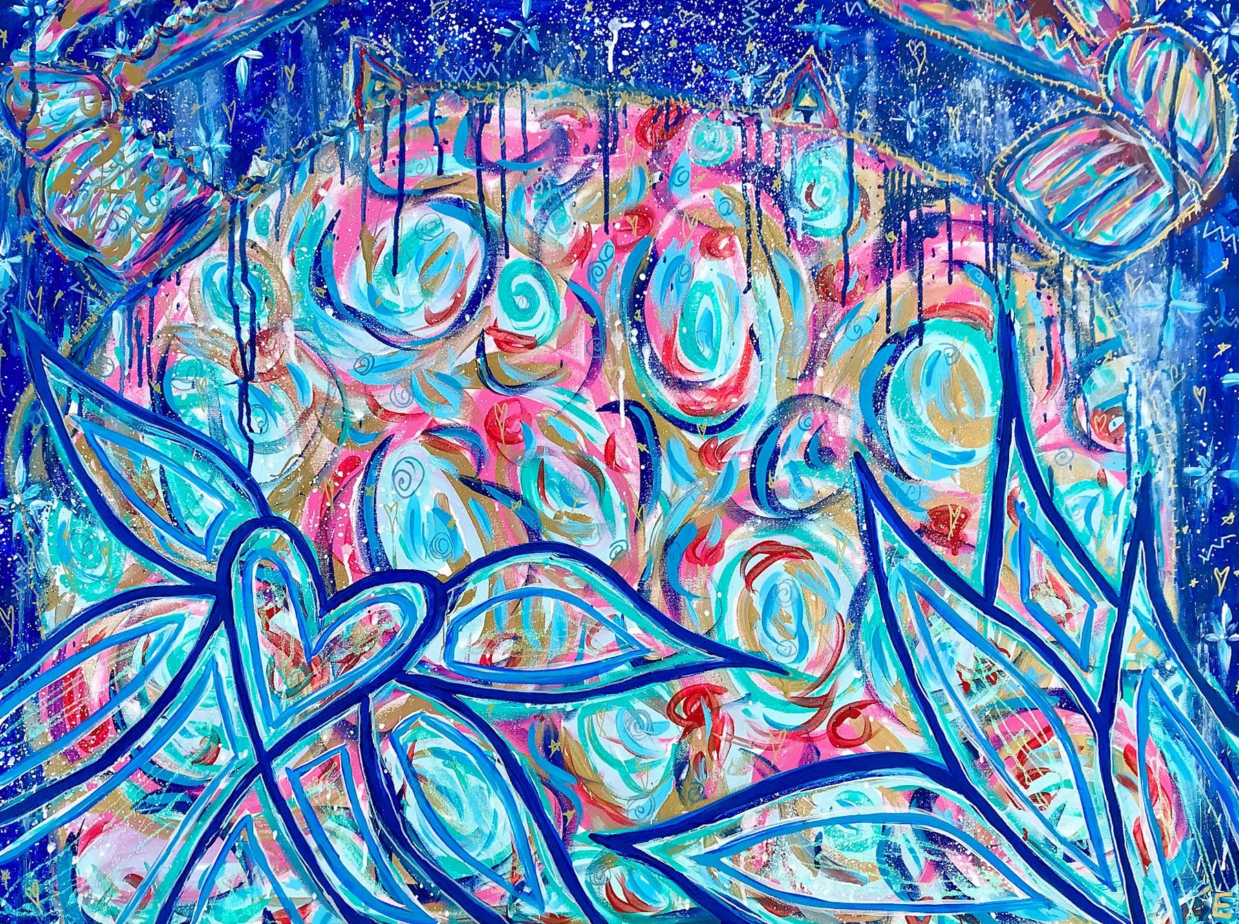36"x48" ASCENDING / ACRYLIC ON CANVAS / THE SIGNITURE LOVE ATTACK IN CMYK